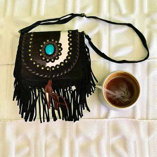 Bolsa Montana Leathers – Couro Bovino Natural com Pelos e Franjas